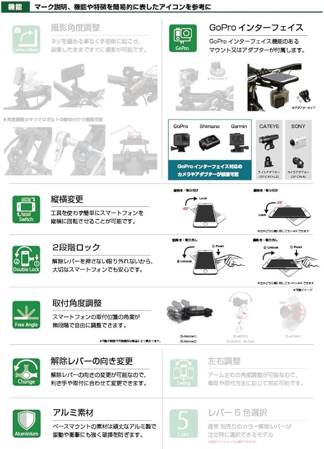 本マウント・アダプター・ブラケット・ヘッドパーツ・ デバイス商品 (専用ケース又は スマートフォン 汎用アダプター[R+3M] / シリコン汎用ケース[R+Silicon]/[R+TRQ])など は