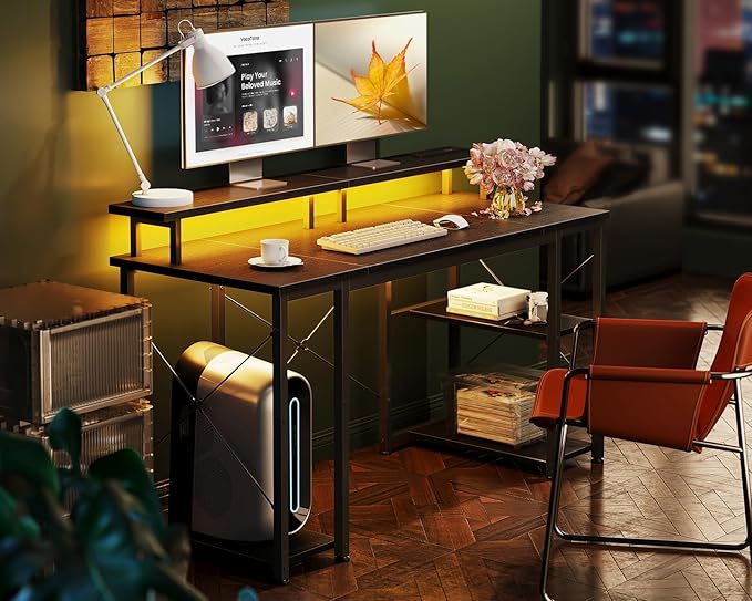 【RGBバーライト付き、お部屋の雰囲気が変わる】ゲーム机には10段階調色・9段階調光のLEDバーライトを搭載しており、気分やシーンに合わせてカラーを切り替えることができる。頑丈で長持ちやすい。臨場感にあふれるゲーム雰囲気だけではなく、温かみのある学習・仕事環境も作り出せる。