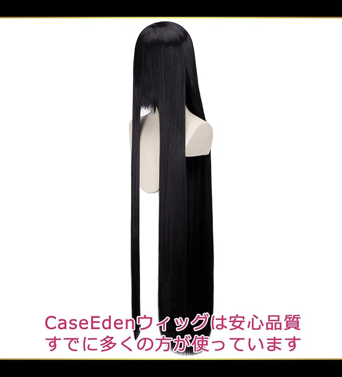 CaseEden コスプレ ウィッグ プレミアム 120cm ロングヘア ロング 長髪 さらさら ブラック 黒髪 6039