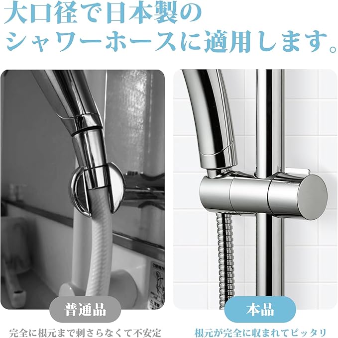 [大口径] 本品は大口径デザインを採用して、ホース金具の径が19mmから23.5mmまで適用します。ご購入の前に、ぜひシャワーホース金具の径をご確認ください。