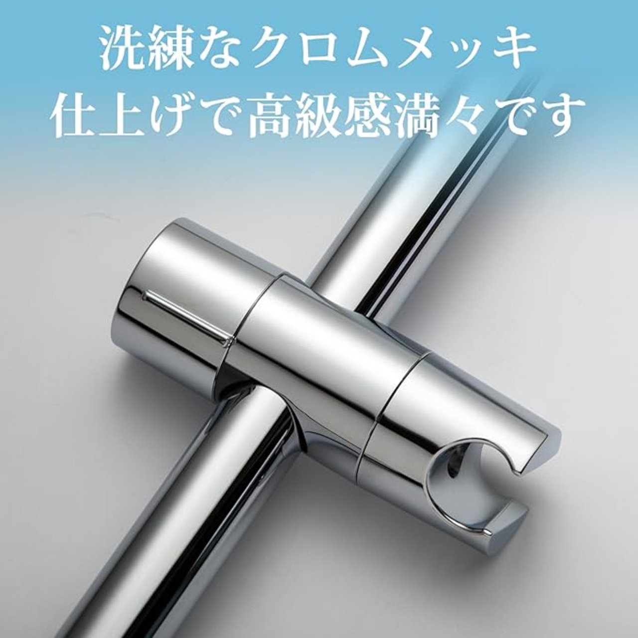 [高さ自在調節・角度調整可能] スライドバーの受け部にシリコンパッドのデザインを採用することで、軽くてスムーズにフックを上下スライドできます。シリコンパッドが柔らかいので、バーに傷つかなくていてでもキラキラしています。角度が45 調整可能なので、お好みのシャワー角度に調節できます。