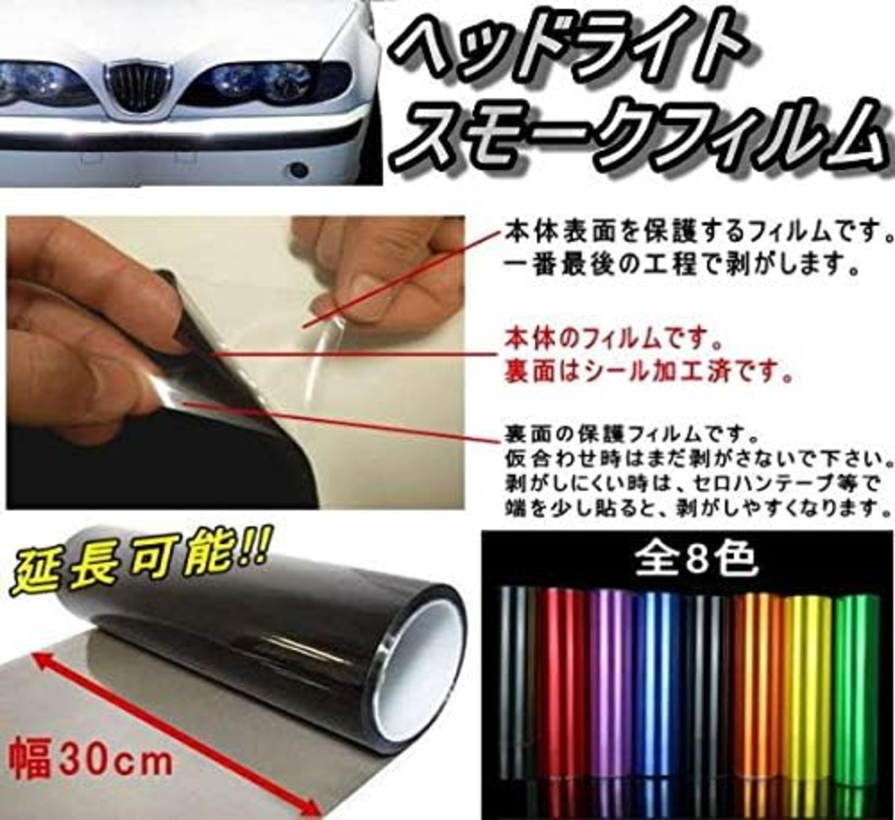ヘッドライト・テールライト・フォグランプ・ハイマウント・アイライン デイライト等の各種ランプにお好みにカットして簡単ドレスアップ! 点灯時もいつもと違う光り方が楽しめます。