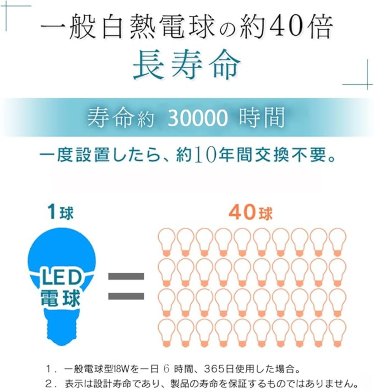 ✅設置簡単&瞬時点灯--日本における汎用の26 mm口金のソケットを使い、白熱電球及びクリプトン電球をこのまま交換できます。しかも電気をつける瞬間、部屋の中には光があふれ出します。頻繫に点灯、消灯するのも使用寿命に悪い影響はほとんど出ません。