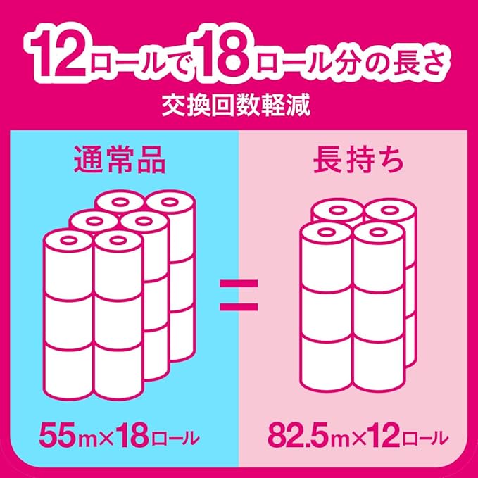 1.5倍巻12ロールでたっぷり長持ち。交換回数減らせます。