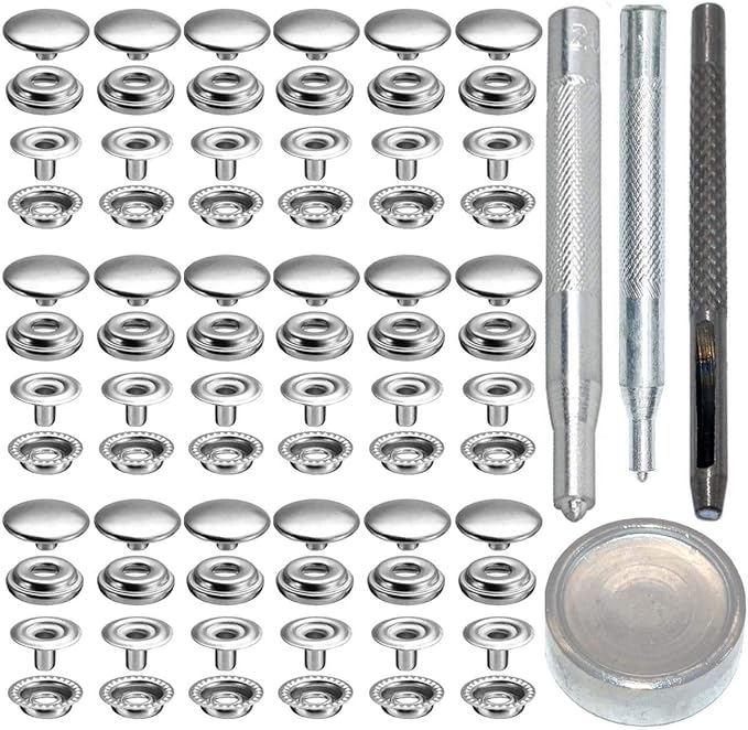 18セット15mmジャンパーホックステンレス鋼メタルボタン(ツール付き)DIY 手作. (シルバー)