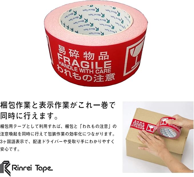 リンレイテープ われもの注意 3か国語テープ 50mm 30m 5巻 #285_5