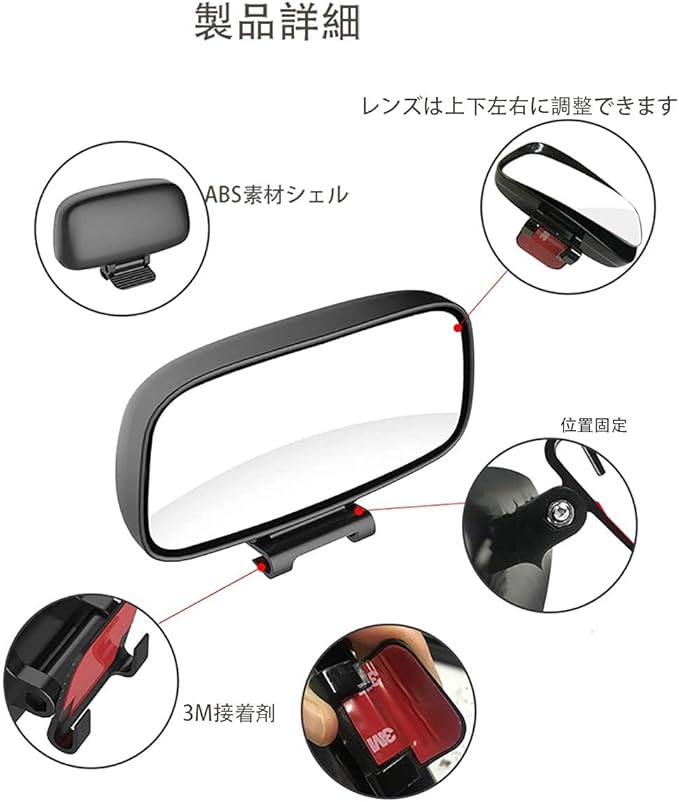 補助ミラーABS製 ; 鏡面素材:アクリル製の鏡面 ; サイズ:13.5*6.5cm