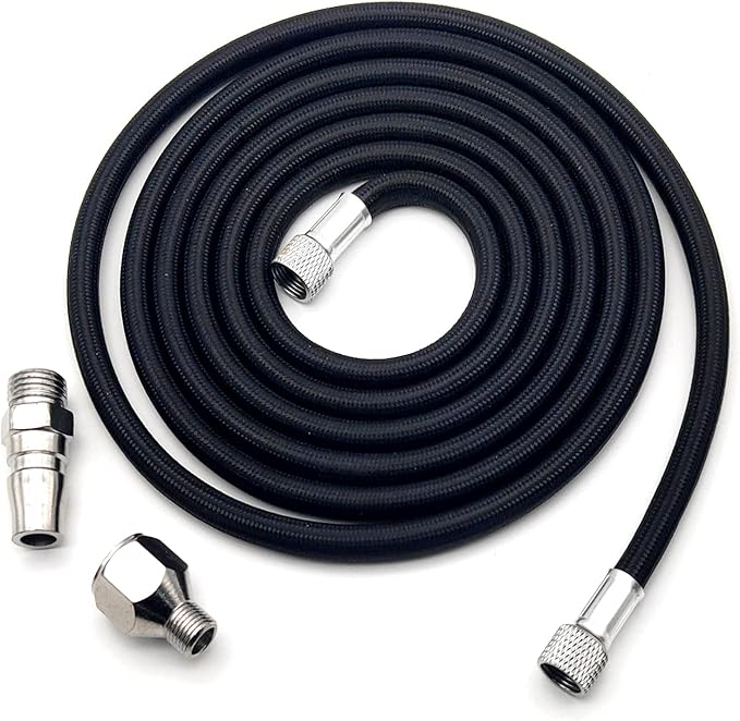 Yandong エアブラシホース ナイロン編組 ブレードホース エアブラシ 接続用ホース 長1.8M エアポンプ接続ホース 1/4 1/8 フィッティング ジョイント付き