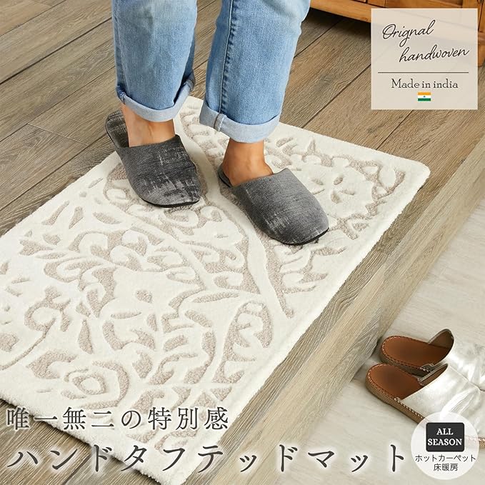 グラムスタイル 玄関マット 室内 手織り 50x80cm 天然素材 北欧 メダリオン 床暖房対応 インド サータ