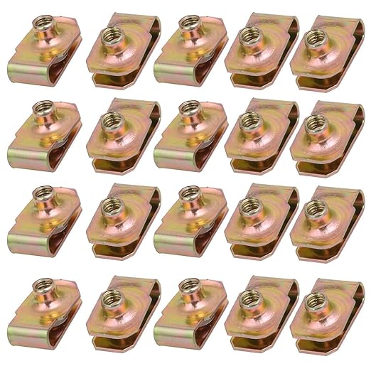 限定 Uナット Uクリップ スピードファスナー 真鍮トーン 65Mnスプリングスチール M5ねじボルト用 20個入り