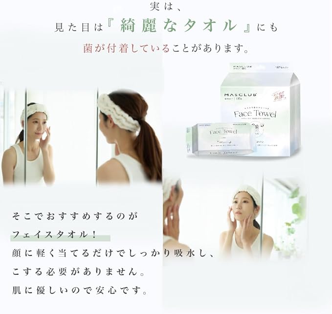 【衛生的・エコ・ソフト・丈夫な使い捨てタオル】 毎回新品の状態で使用できるため、非常に衛生的です。通常のタオルでは菌の繁殖や洗剤残りが心配されますが、本製品は使い捨てなので、常に清潔な状態を保つことができます。 平滑面の仕様により、拭き取り時の摩擦が減少し、肌の赤みを防ぎます。また、スパンレースの技術で編まれた特殊な製法を採用しており、水に濡らしても破れにくい丈夫なクレンジングタオルです。エコフレンドリーでありながら、ソフトで丈夫な使用感を実現しています。