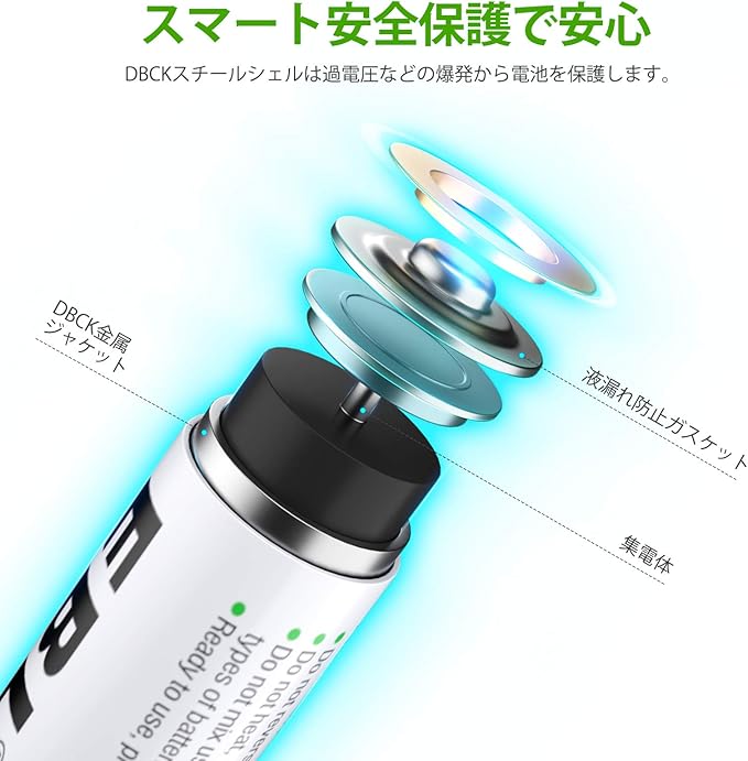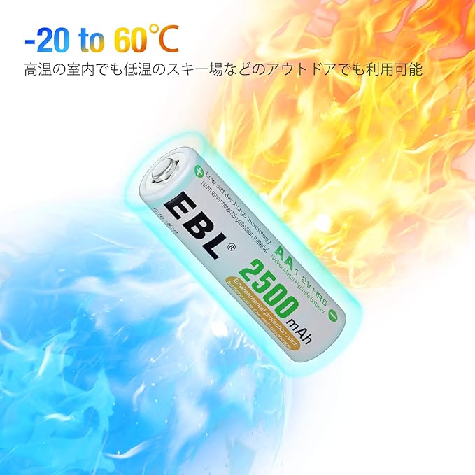 充電式電池:電池は最大1200回充電でき、使い捨てアルカリ電池よりも環境に優しくなります。