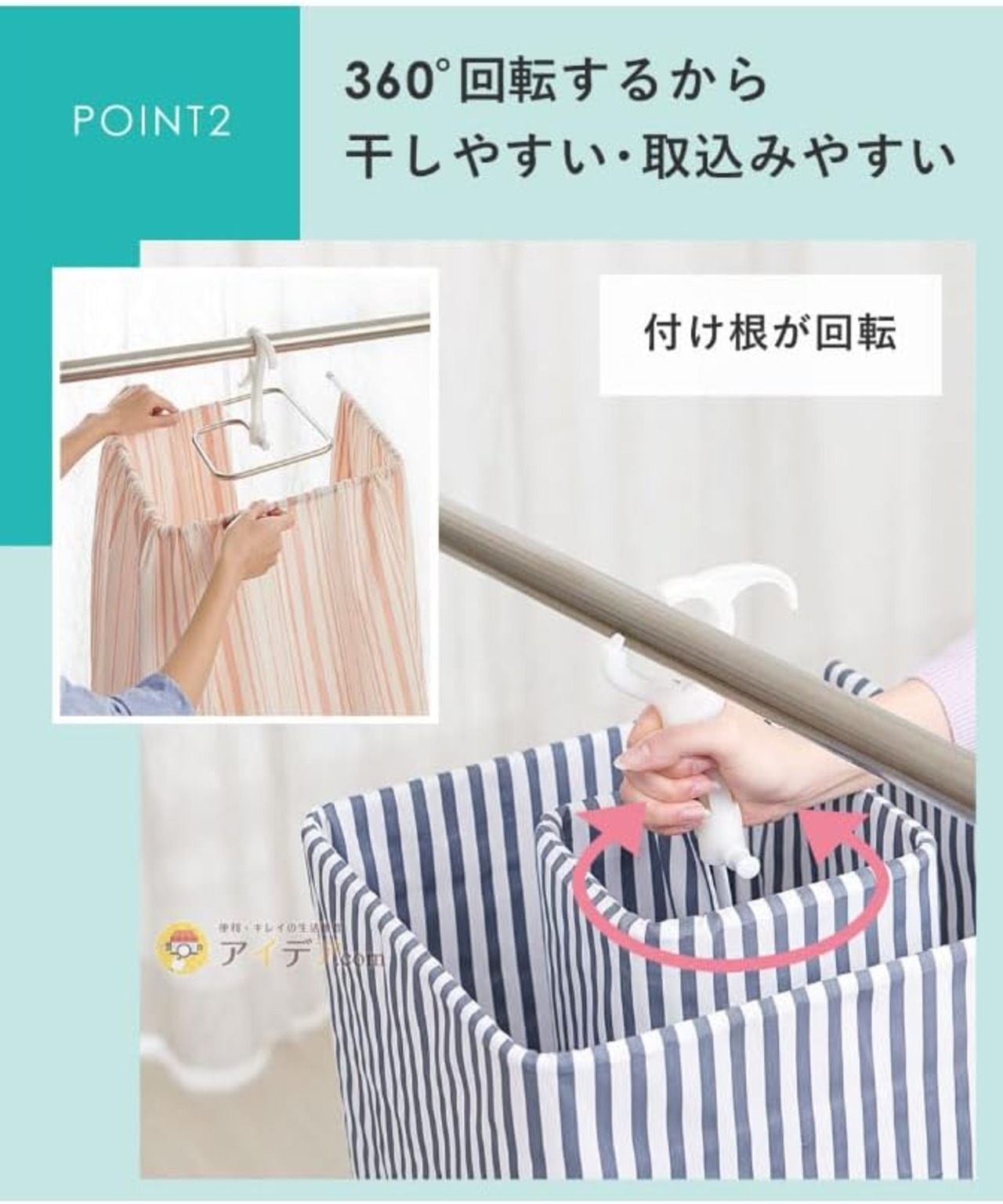 花粉時や雨天時になど、お風呂干しや室内干しにも便利!部屋干しに便利なドア枠フック付!空気の通りがいい設計だから乾きやすい!