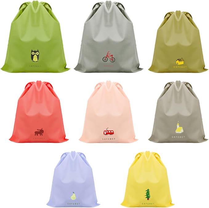 siawadeky 巾着袋 8枚セット 3サイズ S/M/L トラベルポーチ 防塵 防水 ビニール 収納バッグ 旅行用 巾着ポーチ 折りたたみ 再利用可能 温泉バッグ 小物入れ 衣類 靴用 下着収納 出張 旅行 便利グッズ 男女兼用