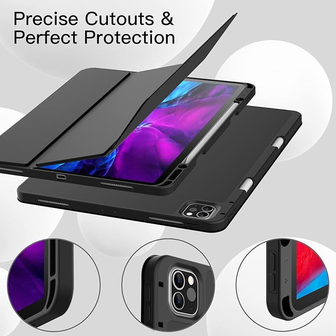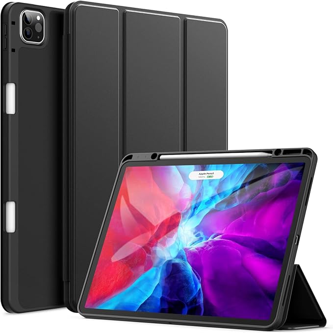 JETech iPad Pro 12.9 インチ ケース (2020/2018モデル 第4世代/第3世代) 専用 保護ケース Pencilホルダー付き ペンシル 第2世代Pencil充電対応 ソフトTPUバック スリム保護カバー オートウェイクアップ/スリープ機能付き (ブラック)