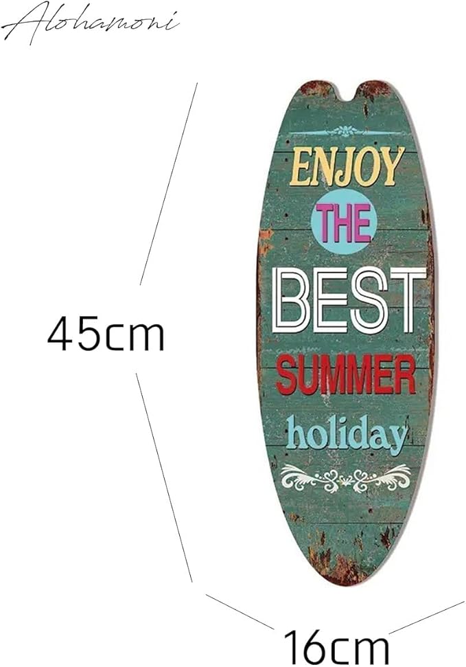 [ALOHAMONI] ヴィンテージ アメリカン ウッド サーフボード サインボード 木製 プレート 看板 ウェルカムボード アンティーク レトロ カフェ USA カリフォルニア 西海岸 ハワイ (⑫緑ENJOY)