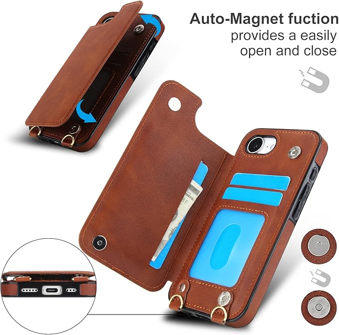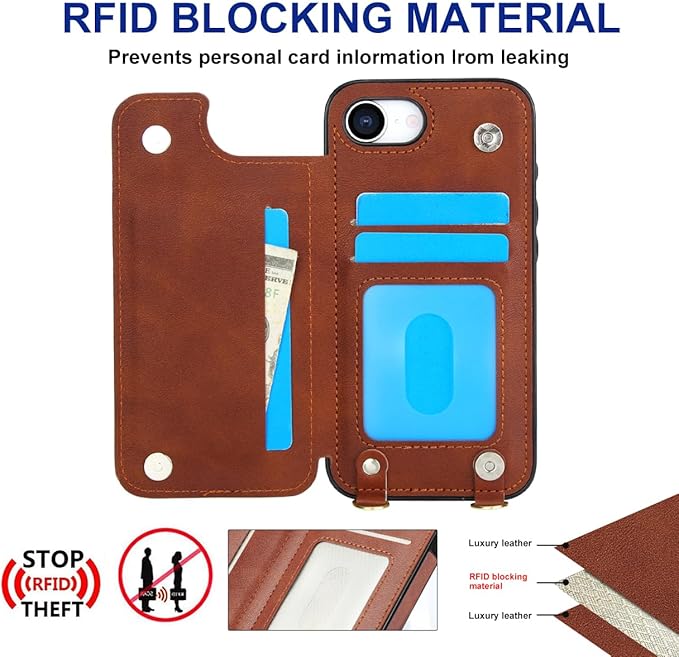 GOKIGIOD 適用 iPhone 16E ケース ショルダー 窓口式 カード入れ スマホケース ストラップ付き アイホン 16E カバー 手帳型 斜めがけ 可愛い アイフォン16E ショルダーケース いPhone16E 首かけ 肩掛け かわいい おしゃれ RFIDスキミング防止機能 ロング クロスボディ 携帯カバー ブラウン