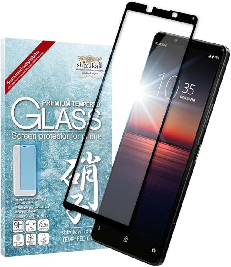 シズカウィル Xperia 1 ii 用 ガラスフィルム 強化ガラス 全面保護 保護フィルム フィルム SO-51A 用 SOG01 用 液晶保護フィルム 黒縁 1枚入り