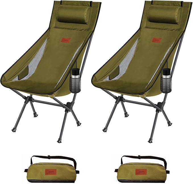 DesertFox キャンプ 椅子 アウトドアチェア 折りたたみ 枕付き 超軽量 2個セット【独自開発のカップホルダー】 【耐荷重150kg】 キャンプ チェア コンパクト イス ハイバック 椅子 いす 収納袋付属 お釣り 登山 携帯便利 2088
