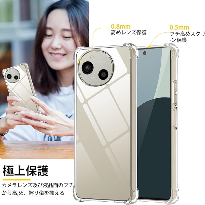AQUOS R9 ケース クリア TPU 薄型 軽量 アクオス R9 SH-51E ケース 耐衝撃 米軍MIL規格取得 滑り止め 黄変防止 防塵 一体型 人気 携帯カバー (クリア)