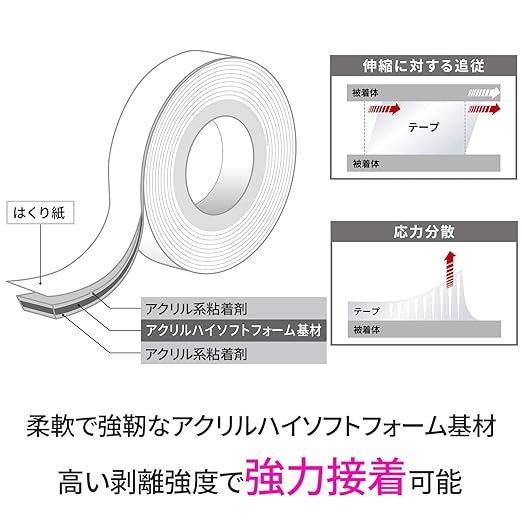 基材/粘着剤:アクリルハイソフトフォーム/アクリル系