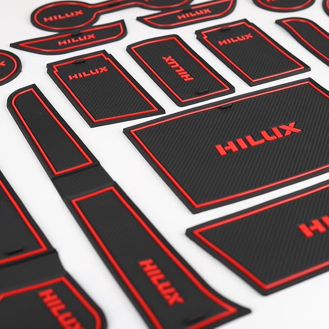 LEXLEYS トヨタ ハイラックス GUN125系 に適用 ドアスロットマット 専用インテリアラバーマットドアポケットマット HILUX コンソールマット 13枚 防キズ 防汚れ(赤)