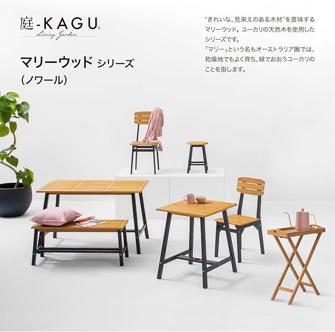 天然木(ユーカリ)を使用したシンプルで使いやすいガーデンファニチャー。温もりのある天然木素材で肌触りも良く、ゆったりとくつろげます。