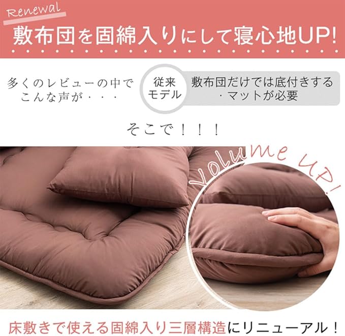 ・高密度固綿入り!底つき感を軽減する三層敷布団