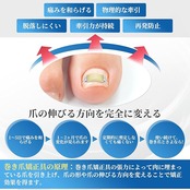 【商品の原理】巻き爪器具の張力によって、埋まった爪を引き上げ、爪の形状や伸びる方向を変えることで効果を得ます。