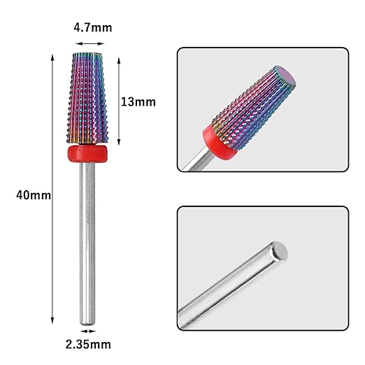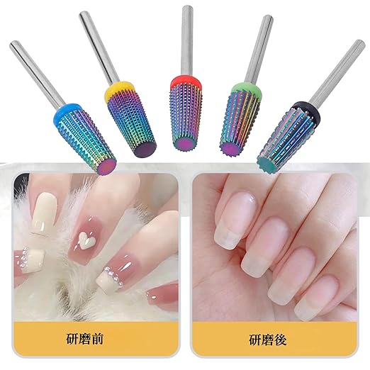 ネイルアートのデザイン作成 超硬ネイルドリルビットは、ネイル上に複雑なデザインや模様を作成するのに適しています。例えば、フラワーデザインや細かいラインなど、細かい作業に適しています。爪の形状修正 爪の形状を整えたり、爪の隅や端を滑らかに仕上げたりするのに使われます。これにより、爪の外観を整えつつ、爪の角質や不要な部分を取り除くことができます。爪の表面の調整爪の表面を均一に整えるために使用されます。これにより、ネイルポリッシュやジェルの塗布がスムーズになり、美しい仕上がりが得られます。爪のエッジの処理 爪のエッジを整えるために使用され、割れや欠けを修復することができます。これにより、爪の強度や耐久性が向上します。アクリルネイルやジェルネイルの削り取り アクリルネイルやジェルネイルを削り取るのに使用されます。超硬素材は耐久性が高く、これらの堅い素材を効果的に削ることができます。