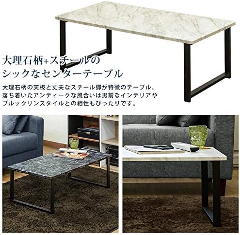 丈夫で安定感のあるスチール脚+大理石柄天板のシックなセンターテーブル。 簡単な作業や来客時にも活躍できる90cm幅の長方形テーブルです。 天板は汚れや水に強く、サッと拭くだけでお手入れできるPVCシート貼り! ブルックリンスタイルや男前インテリアの空間に取り入れたいアイテムです。