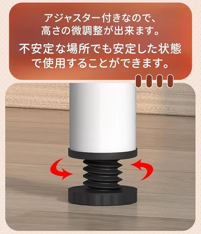 【頑丈設計】耐荷重は50kg! パソコン や周辺機器などをたっぷり載せられます。脚先のアジャスター・強度と耐久性の太い脚で、ガタつきのないしっかりした使用感を実現しました。