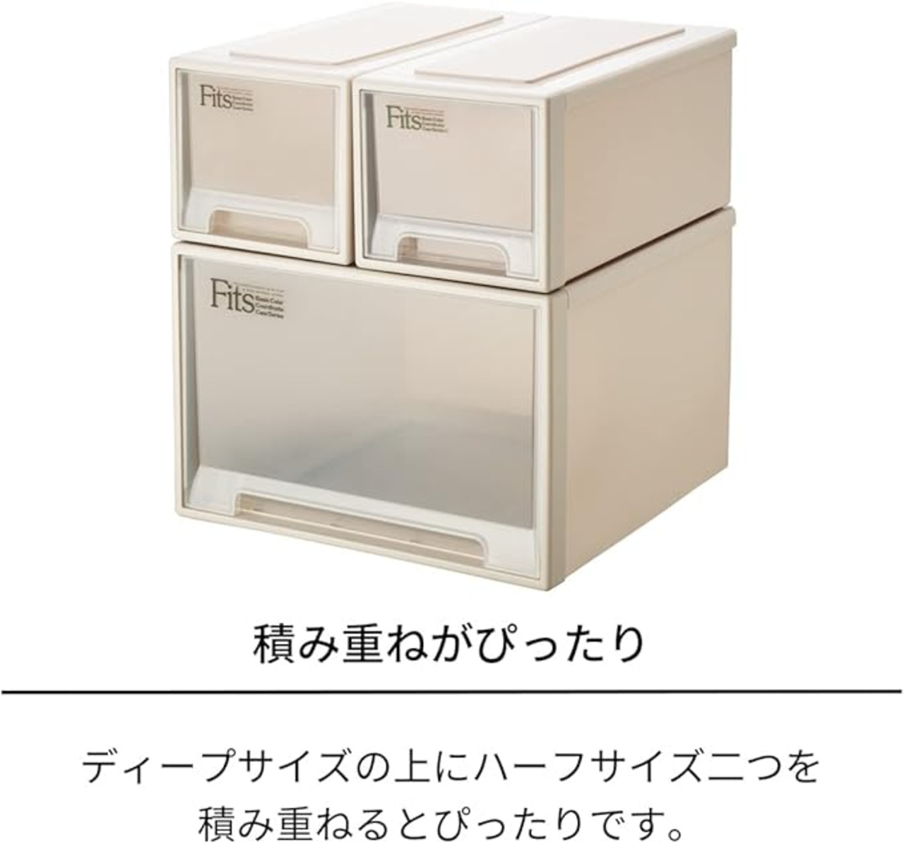 大人気フィッツシリーズから、幅22.5㎝ですき間収納としても使用いただける収納ケースが登場。ワイドディープの上に2つ積み重ねて合わせ使いも可能。
