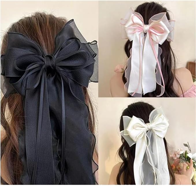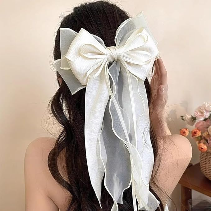 FASELE ヘアクリップ バレッタ 長いリボン 蝶結び 髪留め ロリター Lolita 可愛い キュート 髪飾り 元気 女性 おしゃれ 日常 通勤通学 誕生日 発表会 結婚式 卒業式 入学式 パーティー 記念日 プレゼント