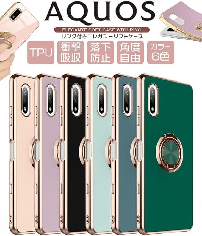 AQUOS wish SHG06 SHG08 A104SH AQUOS wish2 SH-51C sh51c A204SH AQUOS R7 SHARP SH-52C sh52c ケース カバー エレガントケース ソフトケース スマホリング 回転スタンド 上品 スマホ 携帯 アクオス ウィッシュ au SoftBank docomo UQ ワイモバイル 楽天モバイル SIMフリー AQUOS_R7,グリーン
