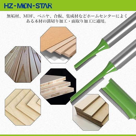 6mm軸 トリマービット 7本セット 超硬刃 ストレートビット 6mmシャンク 木工用 切削工具 溝切り ルータービット HZ-MON-STAR