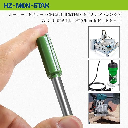 【取付軸径】本製品は木工用のトリマービット或いはルータービットです。6mm取付軸径は日本製の大多数のトリマーやルーターに適しています。1/4インチ(6.35mm)の取付軸径とただ0.35mmの違いですが、インチ系の機器に確実に使えませんので、ご注意ください。