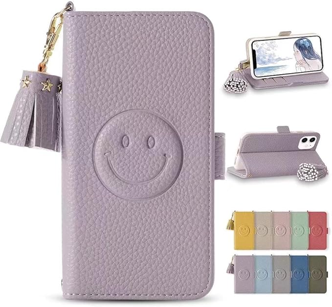 iPhone 16 スマホケース 笑顔 可愛い iPhone 16 携帯電話ケース ケース 手帳型 スマホケース アイフォン 16 携帯カバー かわいい 財布型 カード収納 iPhone 16 電話ケース スマホ カバー スマホ収納3枚 iPhone 16 スマホカバー スタンド機能(パープル)