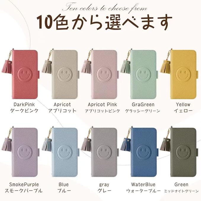 【高品質な素材】スマホケースは柔らかくて上質なPUレザーで作られ、耐熱性と柔軟性に優れ、指紋や油汚れにも強いです。表に立体的なスマイルパターンプラスステキなタッセル、かわいくておしゃれなの雰囲気の中にエレガントな高級感も感じられます。