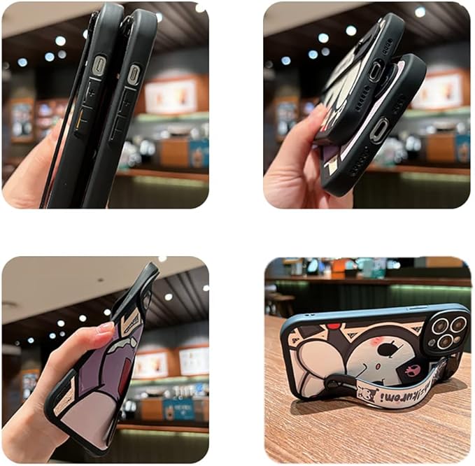 iPhone 15 用 ケース クロミ バクー スマホケース リストレット ハンドストラップ キックスタンド アイフォン 15 用 ケース ストラップ 携帯ストラップ TPU保護カバー 全面レンズ保護