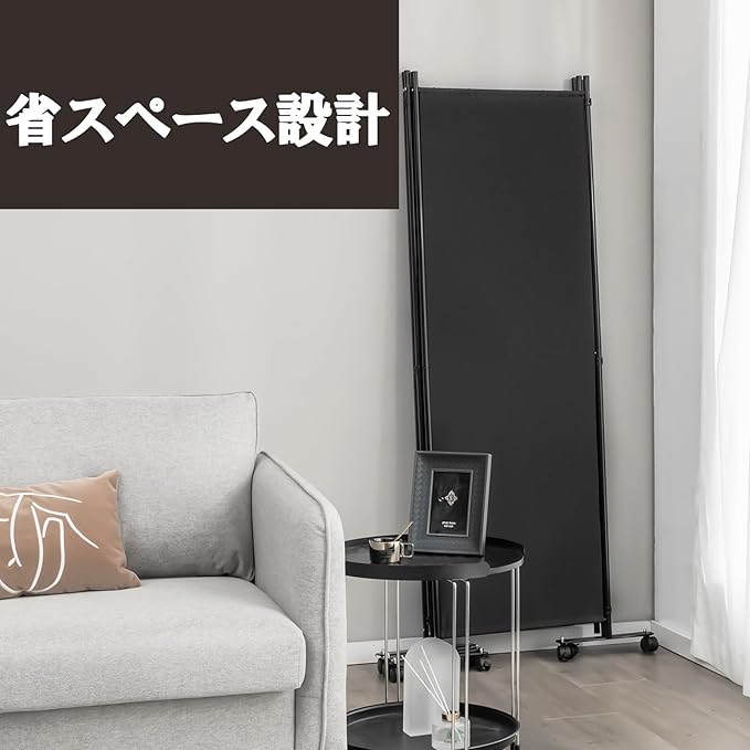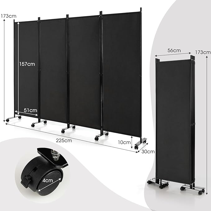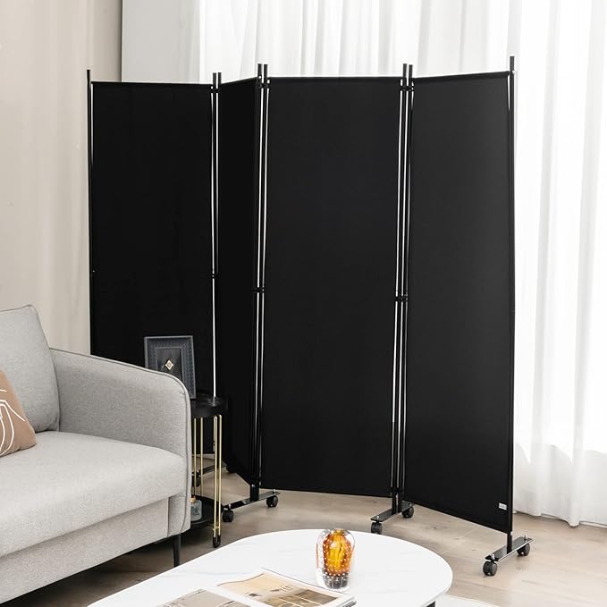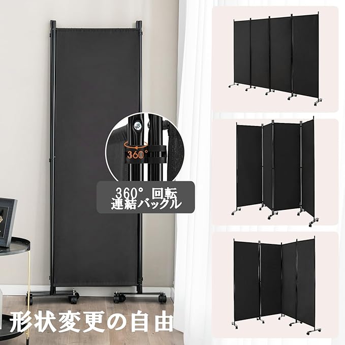 GYMAX パーテーション 4連 220cm 間仕切り キャスター付き 布タイプ 自立式 オフィス クリニック お家 目隠し ブラック