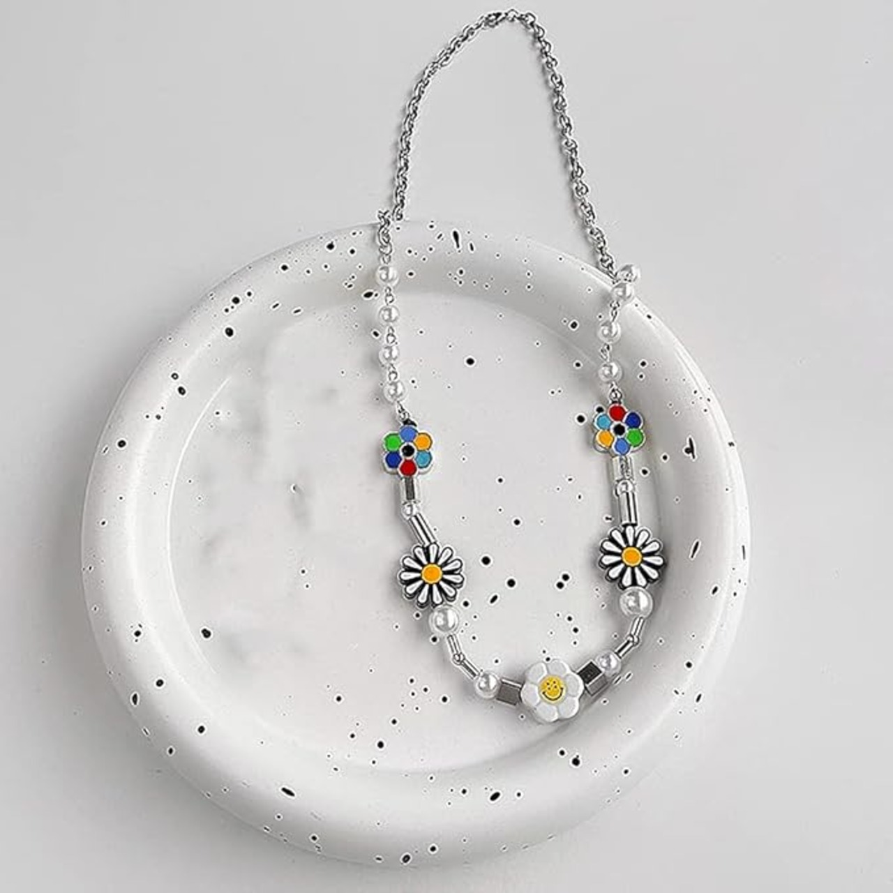 【優れた素材】チタン鋼 チェーン +セラミック 太陽の花 + パール ビーズ+合金 アクセサリー。金属アレルギーフリーアイテムです。真珠ビーズで作られたこの素材は耐久性があり、着用感が向上します。