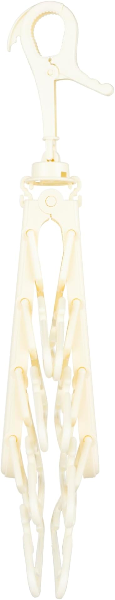 いろいろな場所にかけられる回転式フック採用  フック部分が回転しますので、狭い場所でも干せます。直径3cmまでのポールにご使用できます。洗濯ロープ( 5mm以下)をはさんで固定できる穴付き。かもいなどにもかけられるフックも付いています。