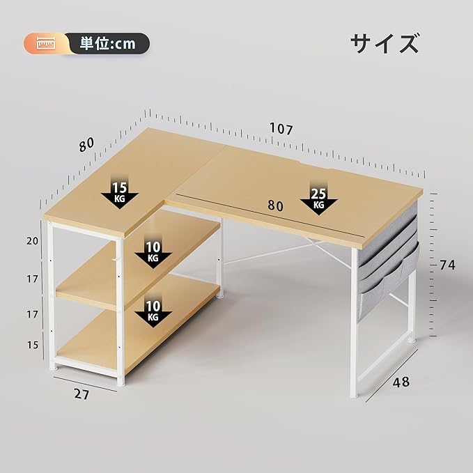 YeTom l字デスク ゲーミングデスク 机 デスク 右棚左棚 幅107cm つくえ 棚板高さ調節可能 収納袋付き L字型 PC 勉強机 作業 在宅ワーク ライトオーク