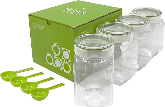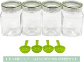 【限定商品】 タケヤ化学工業 TAKEYA フレッシュロック FRESHLOK 角型 1.1L グリーン 4個セット スプーン付き 保存容器 高気密性 ワンタッチ開閉