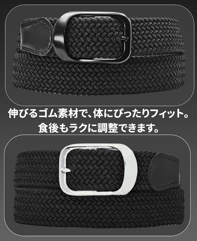 【体型を問わず快適に使えるメンズベルト】 このメンズベルトは、伸縮性のあるメッシュ素材を使用し、編み込みタイプの「穴なし設計」でサイズ調整が自由自在。ウエストにぴったりフィットし、ビジネスでもカジュアルでも活躍する万能アイテムです
