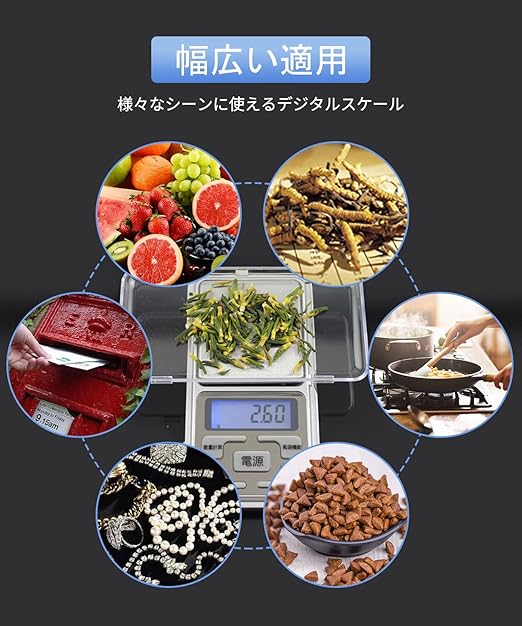 【精密計量】500gまで計量することができます。0.01g単位で精密な計量が可能ですので、業務用にもOK。