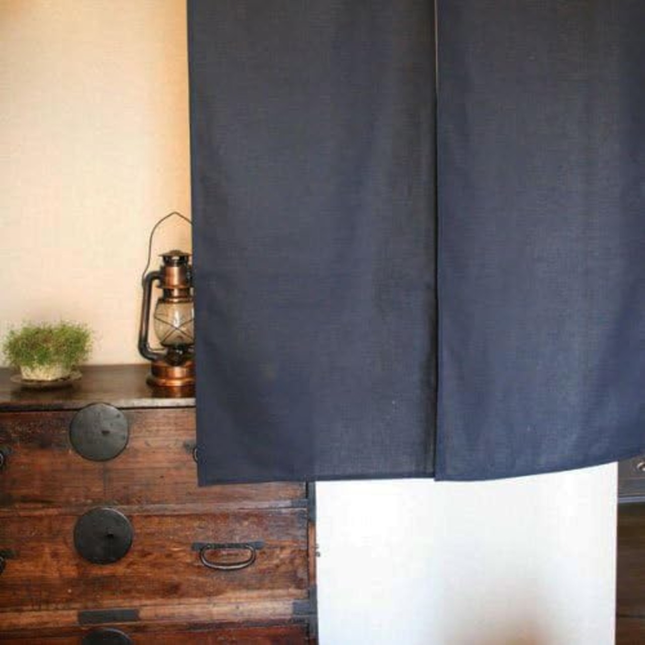 【デザイン】シンプルな綿麻無地の和モダン暖簾。濃く暗めの藍色なので高級感があり落ち着いた雰囲気を演出します。玄関や和室はもちろん、飲食店などにもオススメです。