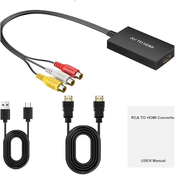 RCA to HDMI 変換コンバーター AV コンポジットto hdmi 変換アダプタ 3色端子 変換 古いゲーム機(XBOX、PS1、PS2、SNES、Wii、N64)古いレコーダー(DVD、VCR、VHS)など機器 3色コードからHDMI 720P/1080P 変換