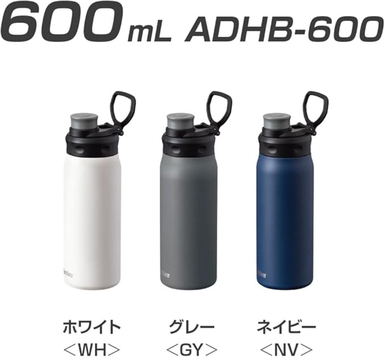 アトラス 水筒 600ml 直飲み 保冷 真空断熱 スポーツボトル 軽量 スポーツドリンク対応 持ち運びに便利 ハンドル付き ダイレクトボトル アクティバ ホワイト ADHB-600WH